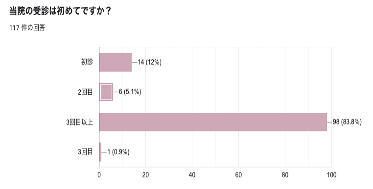 約1ヶ月程度、Googleアンケートフォームで患者さんにアンケートを実施させていただきました。
